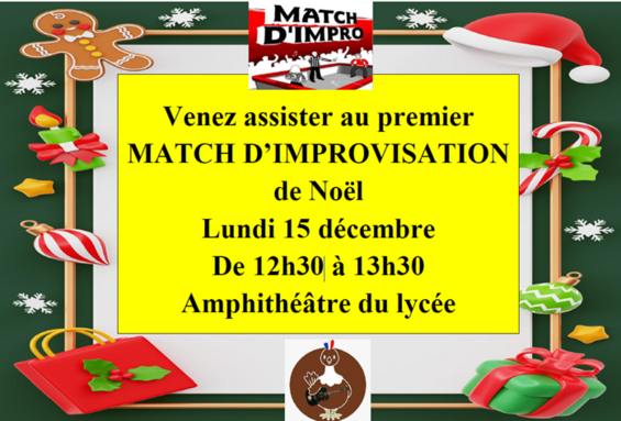 Par CHARLOTTE BARRAL, publié le lundi 12 janvier 2026 19:28 - Mis à jour le lundi 12 janvier 2026 19:28A l’occasion des fêtes de fin d’année, le club de théâtre d’improvisation du lycée a invité élèves et professeurs à venir voir et participer à un match d’improvisation à l'amphithéâtre sur le thème de Noël, le dernier lundi avant les vacances. -
